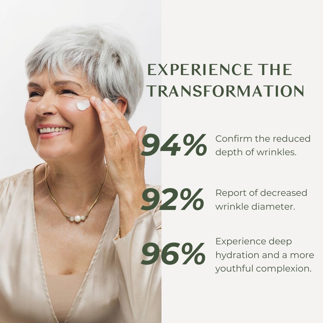 This advanced formula combines 15% Hyaluronic Acid to deeply hydrate, 5% Retinol to reduce wrinkles, and Collagen to restore firmness and elasticity. Together, these powerful ingredients promote smoother, more youthful skin.